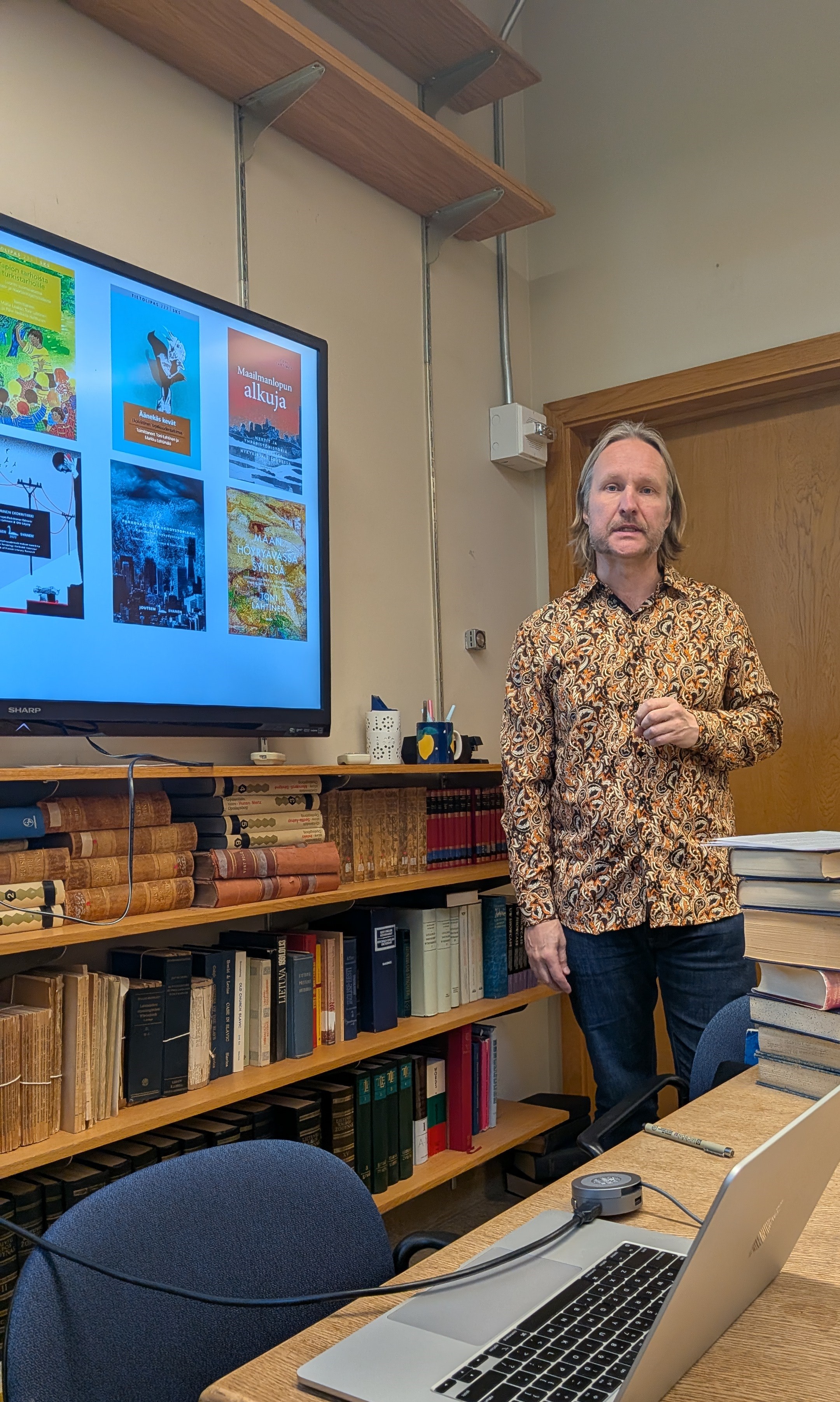 University of Helsinki literary scholar Toni Lahtinen also visited the UW this fall and spoke about Finnish dystopian novels. He has done pathbreaking research about how young people read novels about climate change by using empirical methods. Toni’s research suggests that novels about climate change do not always change young readers’ minds in the way one might expect.