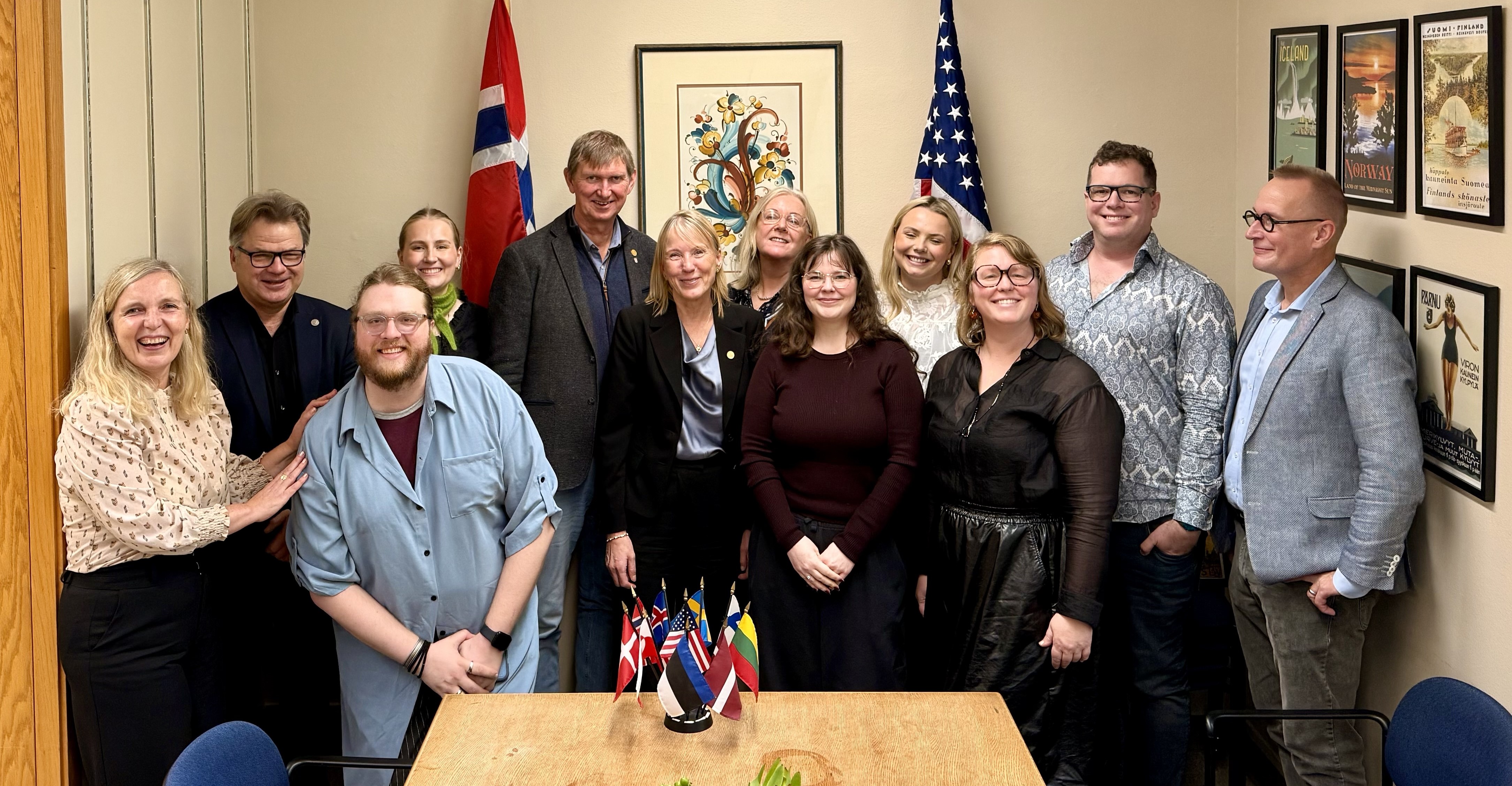 On October 23rd, the department hosted a faculty delegation from the University of Bergen who were visiting the UW campus in conjunction with One Ocean Week. Rector Margrethe Haugen along with research scientists and other faculty from Bergen drank coffee and ate apple cake alongside our department's faculty and graduate students. The UW-Bergen Exchange has been a longstanding collaboration between the two universities; since the 1970s over 80 faculty members have participated. It was delightful to have the chance to showcase our Norwegian program and the Scandinavian Studies department during their visit. We look forward to the next time!